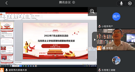 7月28日下午,马院原理和纲要教师党支部开展主题党日活动。会议由党支部书记谢霄男主持,全体党员参加了会议。